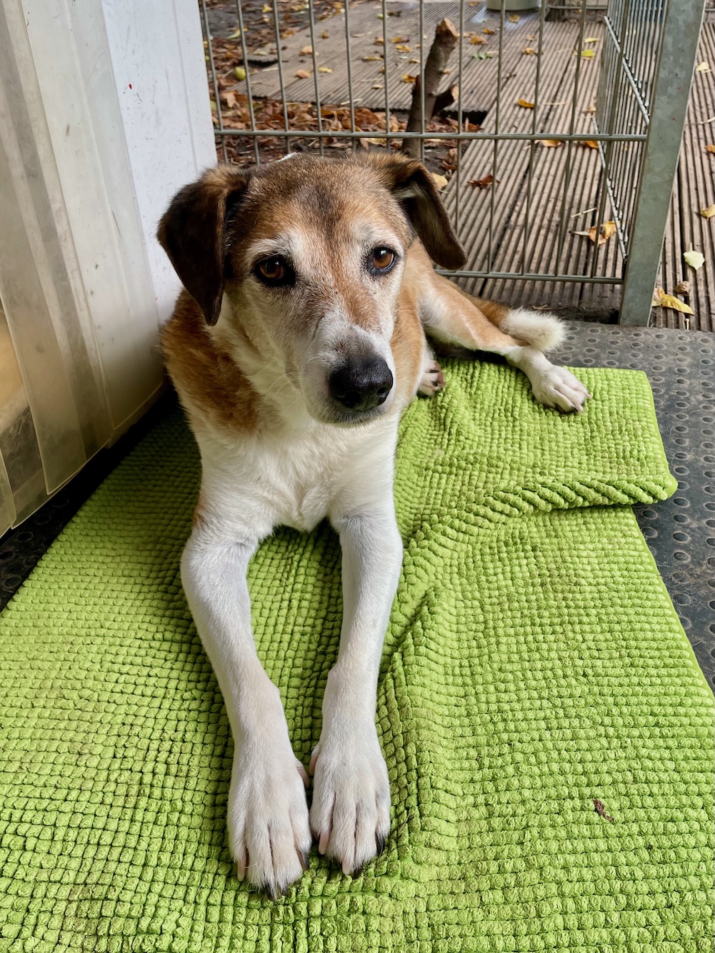 Ich darf nach erfolgreicher Vermittlung im Jahr 2020 und einigen Jahren in einem liebenden Zuhause nun meine alten Tage in guter Gesellschaft auf dem Tierschutzhof verbringen.